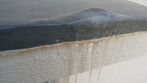水滴が流れてきます。気温が低いとこのように凍ってしまうのです。