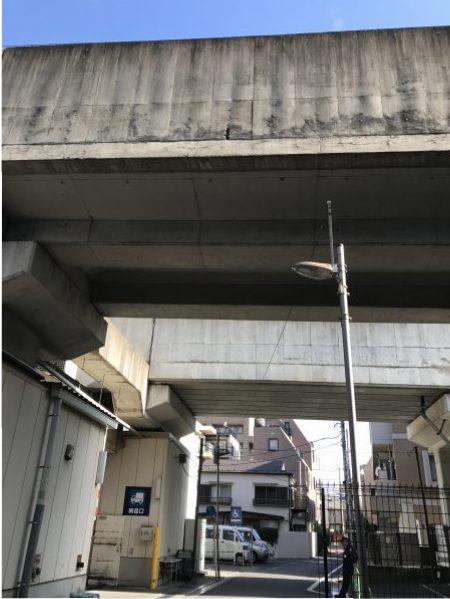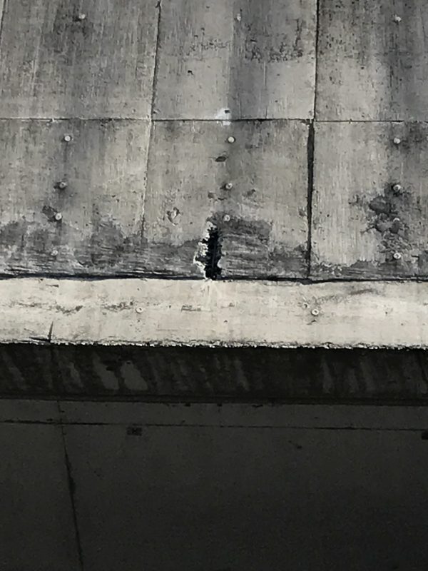 コンクリートむき出しなので、良く起こる爆裂(コンクリート内の鉄筋が錆びる)してはく落しています。