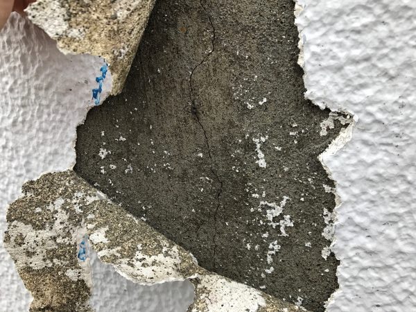 原因(経年劣化に地震)は屋上のパラペット天端のひび割れから水が入ったのです。これでは雨漏りしているはずですね。