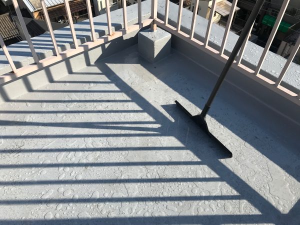 防水工事、雨のあとは水をとってから始めます。